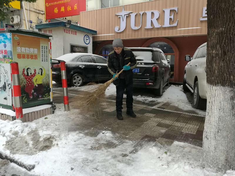市房屋置業(yè)擔(dān)保公司領(lǐng)導(dǎo)帶領(lǐng)黨員干部職工開(kāi)展積雪清掃行動(dòng)