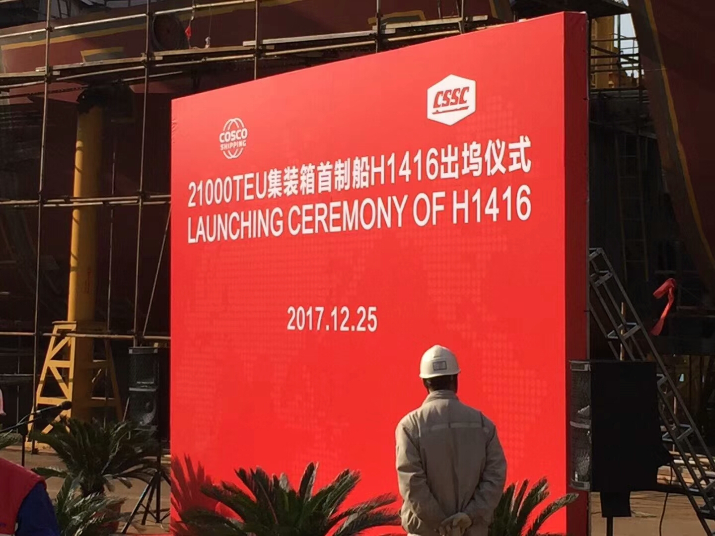 祝賀南通豪通船務(wù)(江南事業(yè)部)在上海長興江南重工參與建造的目前世界最大的21000TEU集裝箱(H1416),于2017年12月25日順利下水!