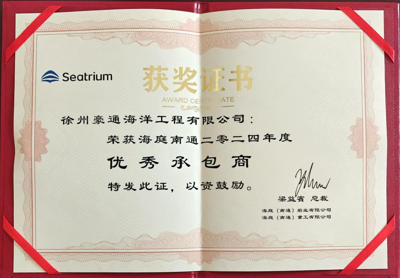 榮獲南通海庭2024年優(yōu)秀分包商稱號(hào)